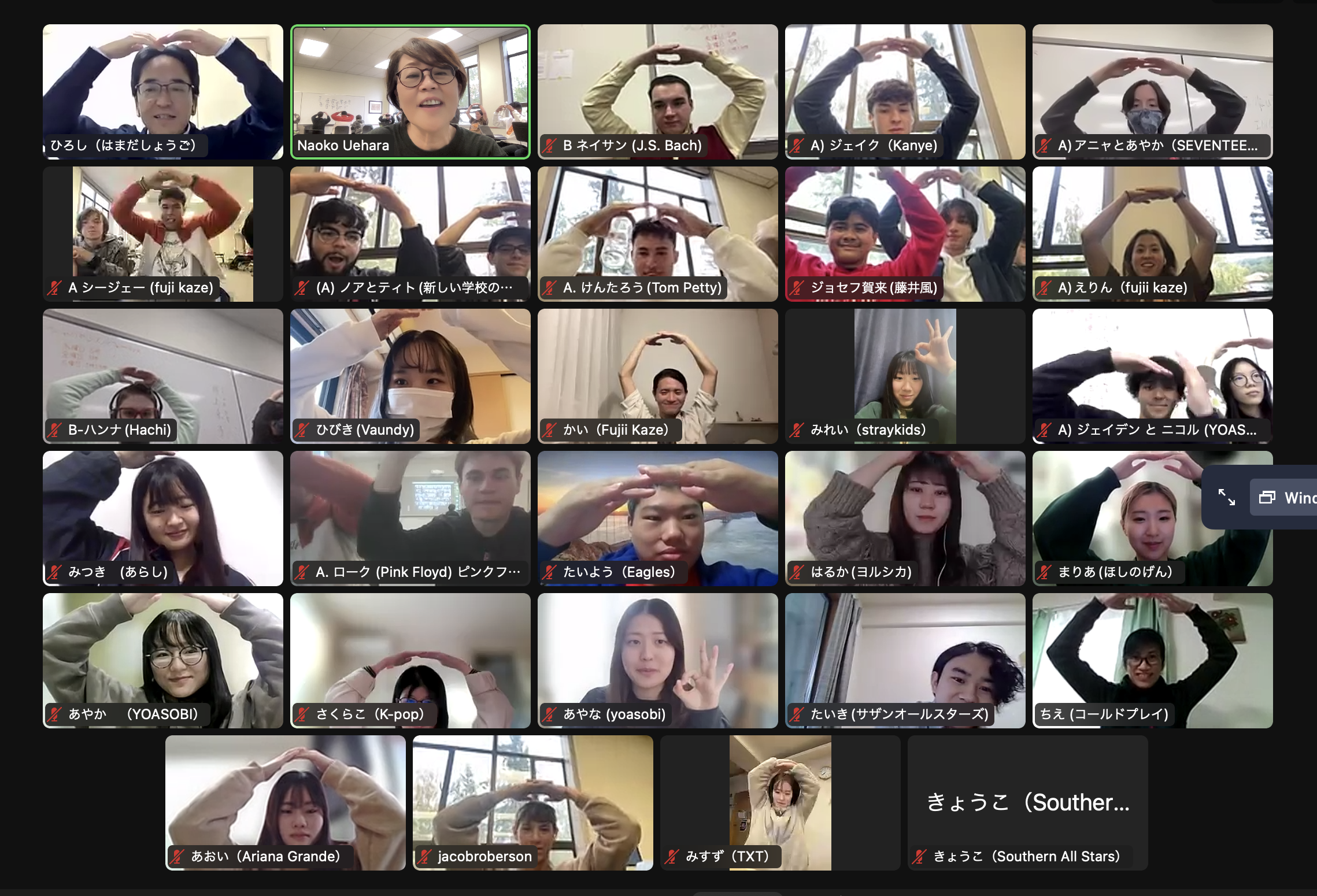 2022年度に続き2023年度も、サンフランシスコにあるセントメアリーズ?カレッジ(SMC)で日本語を学んでいる学生と、オンラインで交流しました。SMCの日本語クラスに本学の学生が参加する形の交流で、本学からは合計18名が参加、SMCからは各回15人前後が参加しました。